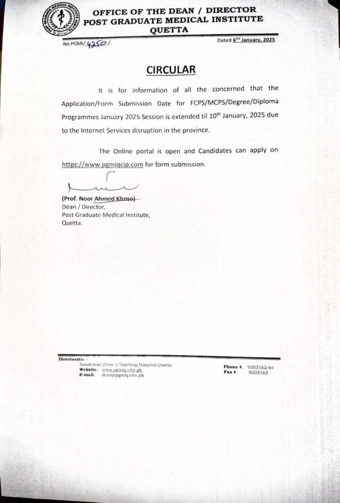 Entry Test For FCPS/MCPS, Closing Date for submission of Online Applications is 30th November, 2024